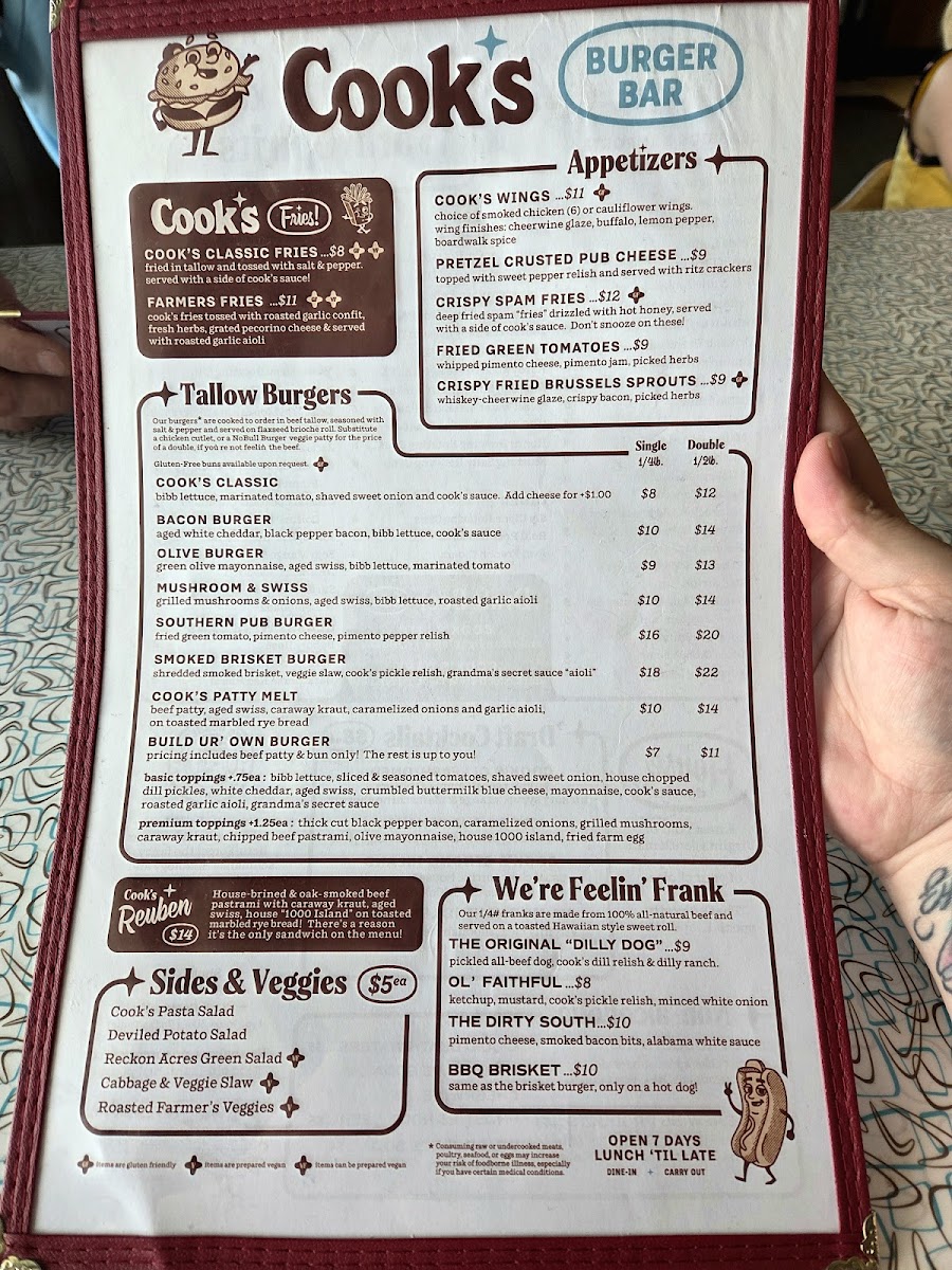 Whether you’re indulging in smoky wings or refreshing sweet tea, Cook's Burger Bar guarantees an unforgettable meal. Don’t miss out on this must-try spot!